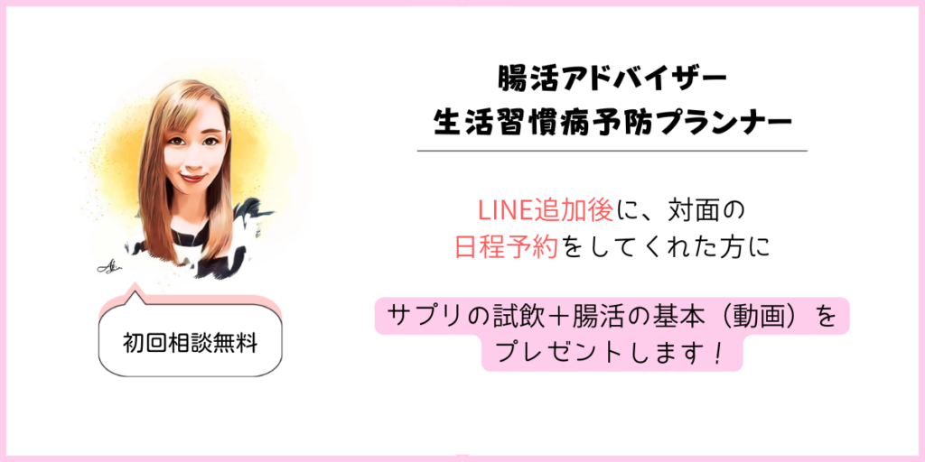 ライフスタイルに合わせた腸活方法、定期的に質問をされたい方は、「個別指導(食事+サプリ+1ヶ月相談無料)」をご覧ください。